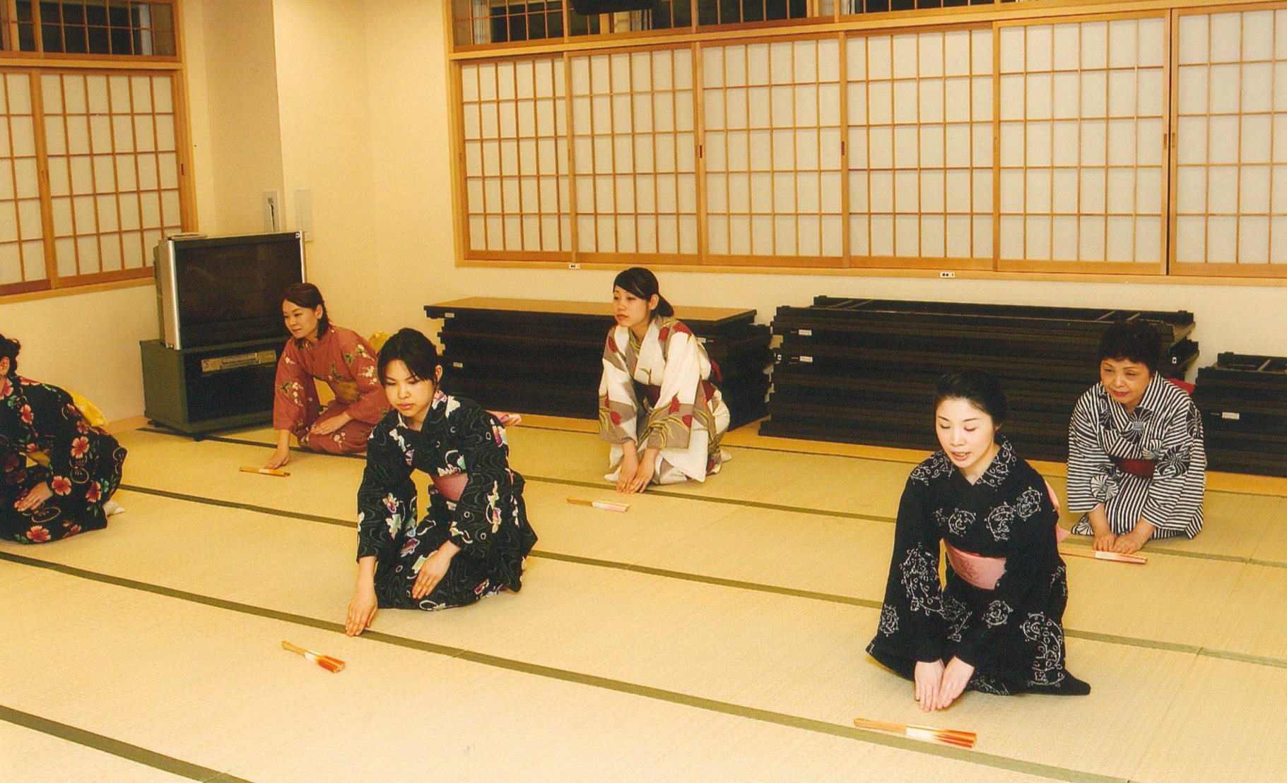 一、美しい着物の着方、礼儀作法、立ち居振舞い、日本舞踊の基本から丁寧にお稽古いたします。